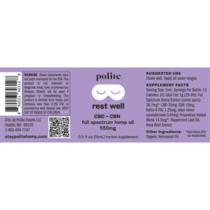 Rest Well Oil Drops: Total 550mg Hemp Extract
